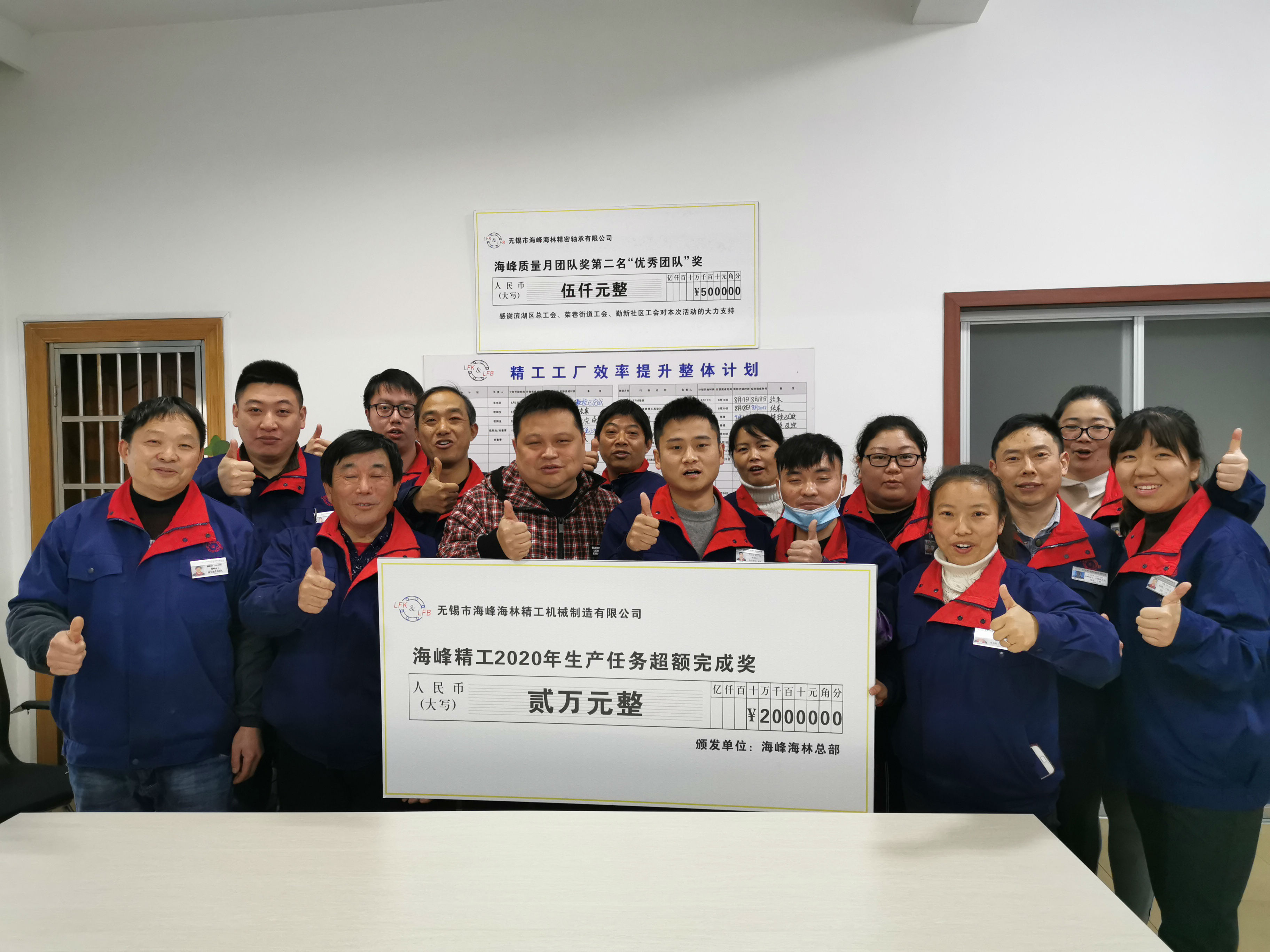 最后,奚志强总经理为员工们颁发了生产任务超产奖,奖金两万元,并希望团队继续努力,再创辉煌。